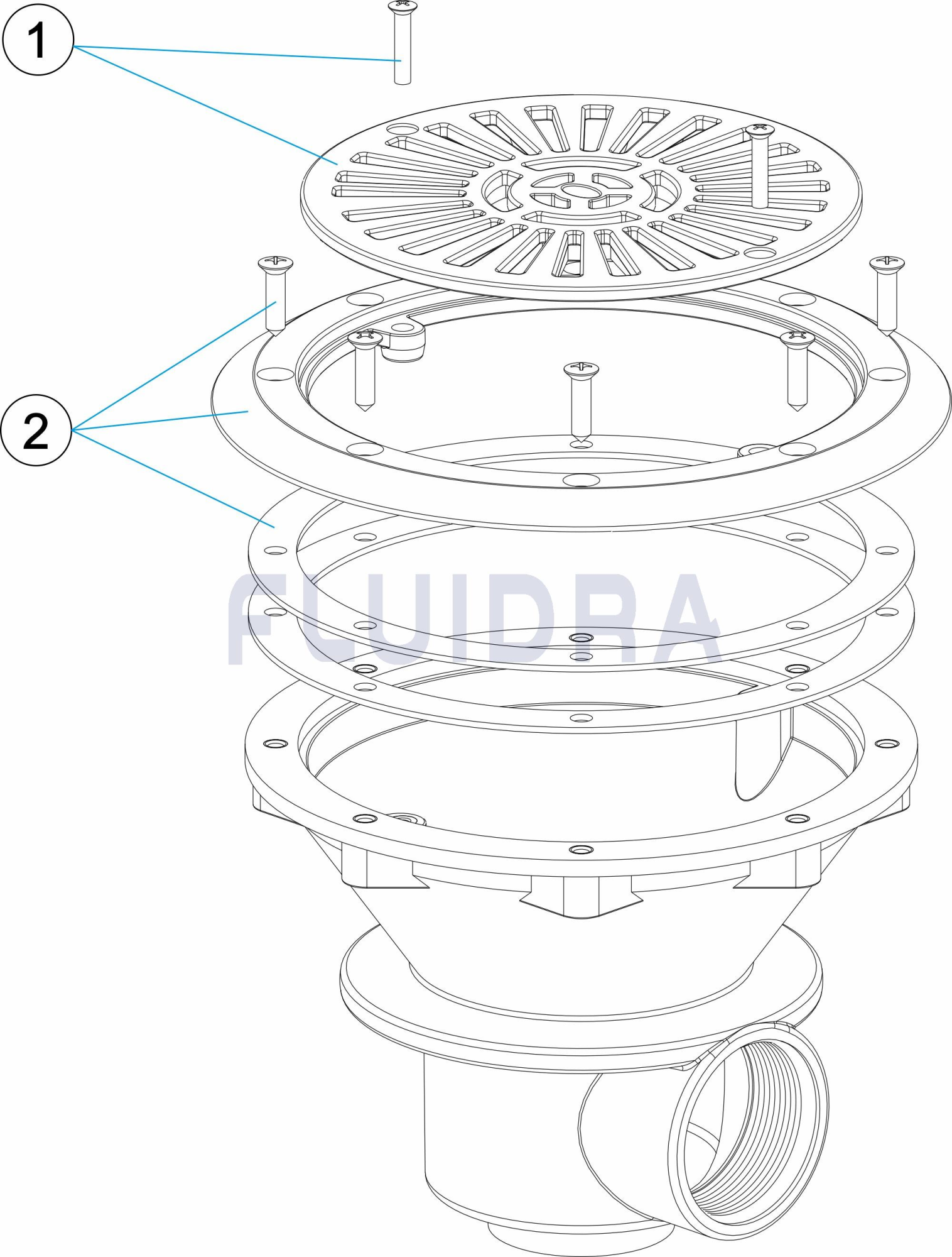2'' страничен изход. Тяло и решетка от ABS. Предлага се със самозалепващи се уплътнения, фланец и винтове. Максимален препоръчителен дебит: 13m3/h. Съответства на стандартите: EN 16582-1 EN 16713-2