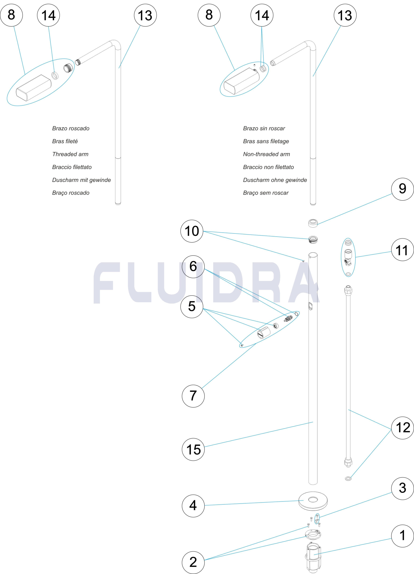 Душ от полирана неръждаема стомана AISI-304 (Ø 43 mm) с 1 хромирана душ глава против варовик и 1 вентил за отваряне на потока. С вградено закрепващо приспособление 00107.