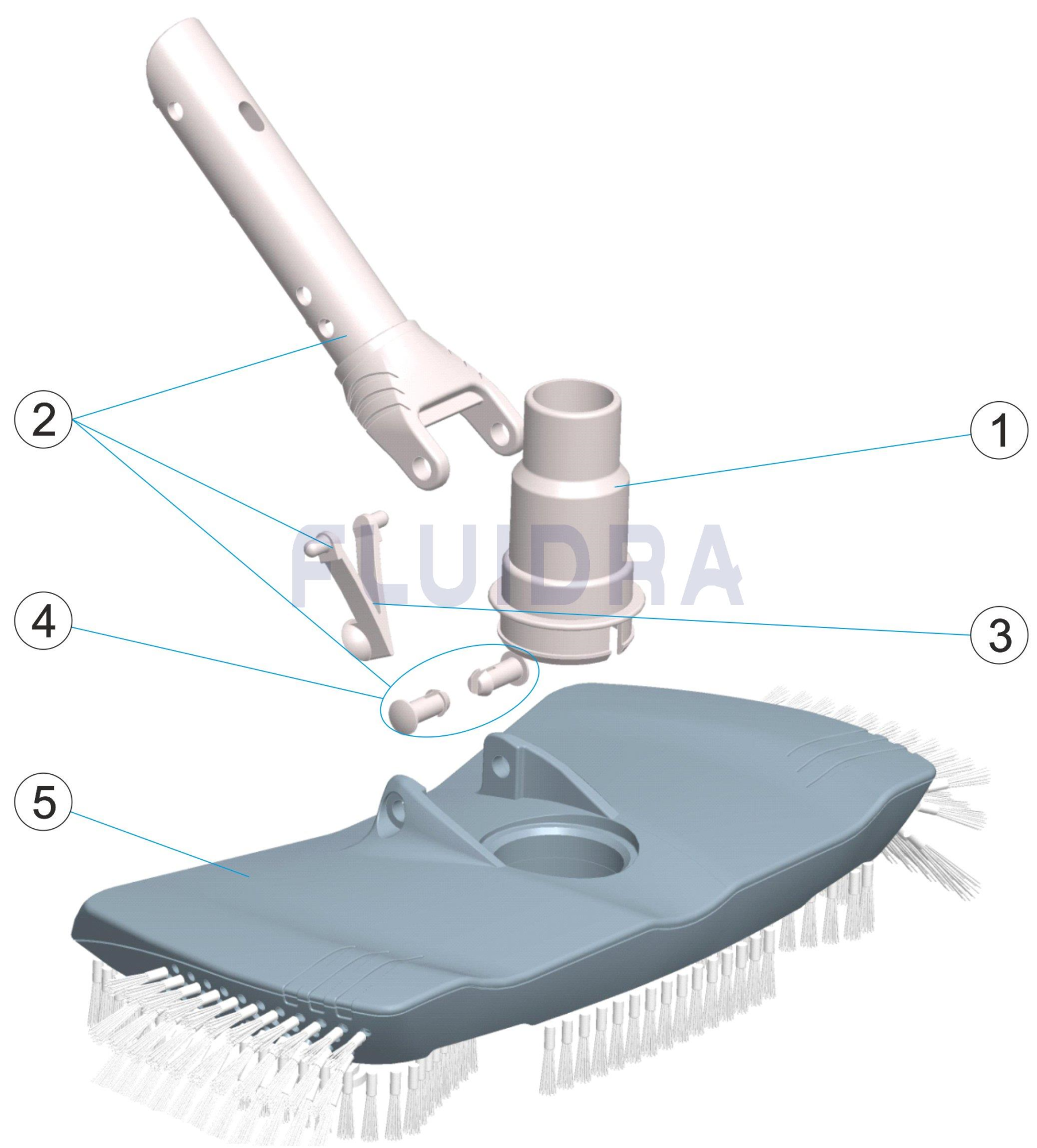 Произведен от ABS, този модел разполага с връзка за маркуч с избор от два диаметъра (Ø 32-38). Може да се фиксира към телескопичен прът чрез носач или фиксираща гайка. Четката е изработена от бял полипропилен.