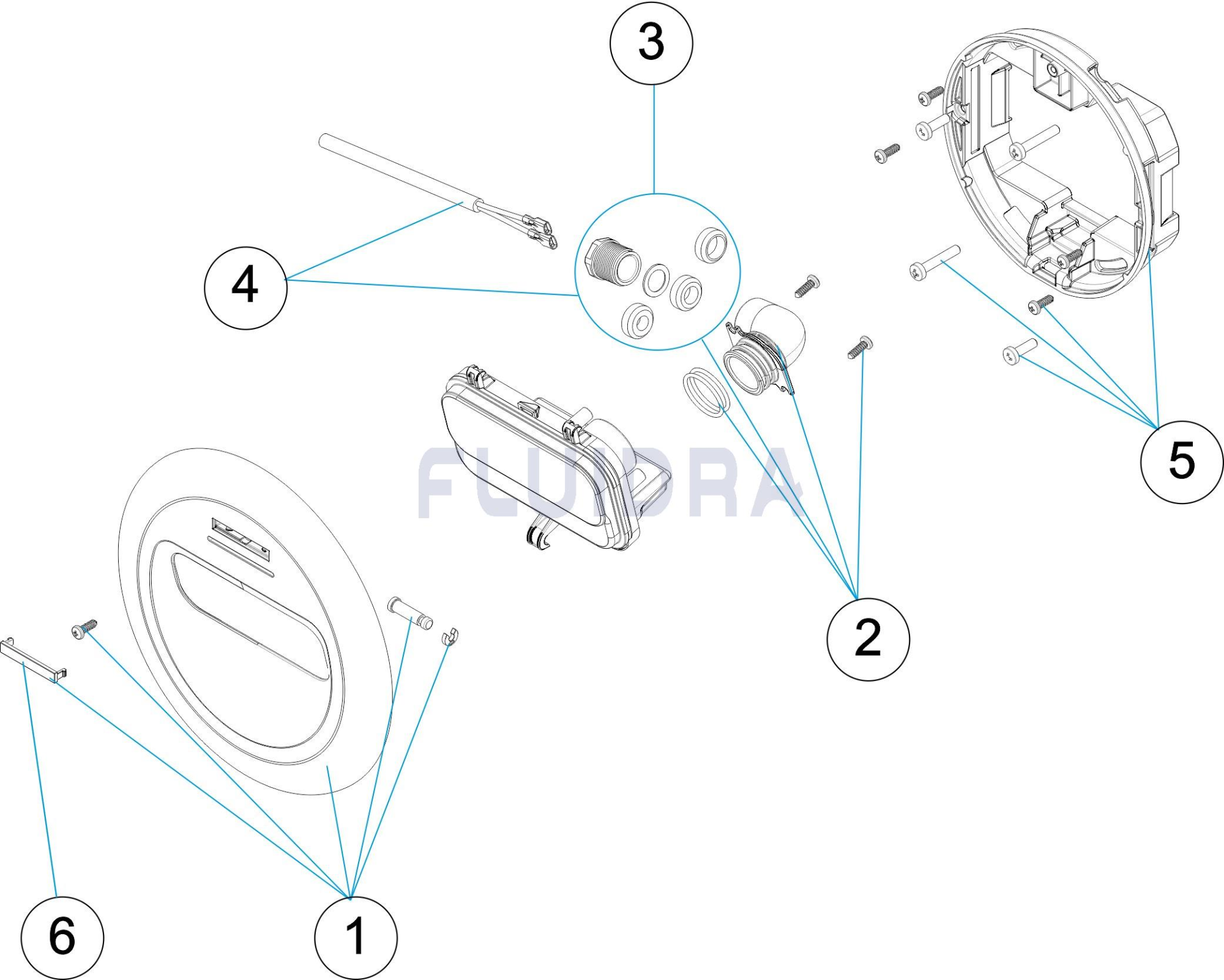 El proyector LumiPlus Design es un proyector subacuático de gran potencia que se puede instalar en nichos con un diámetro de 180 mm.