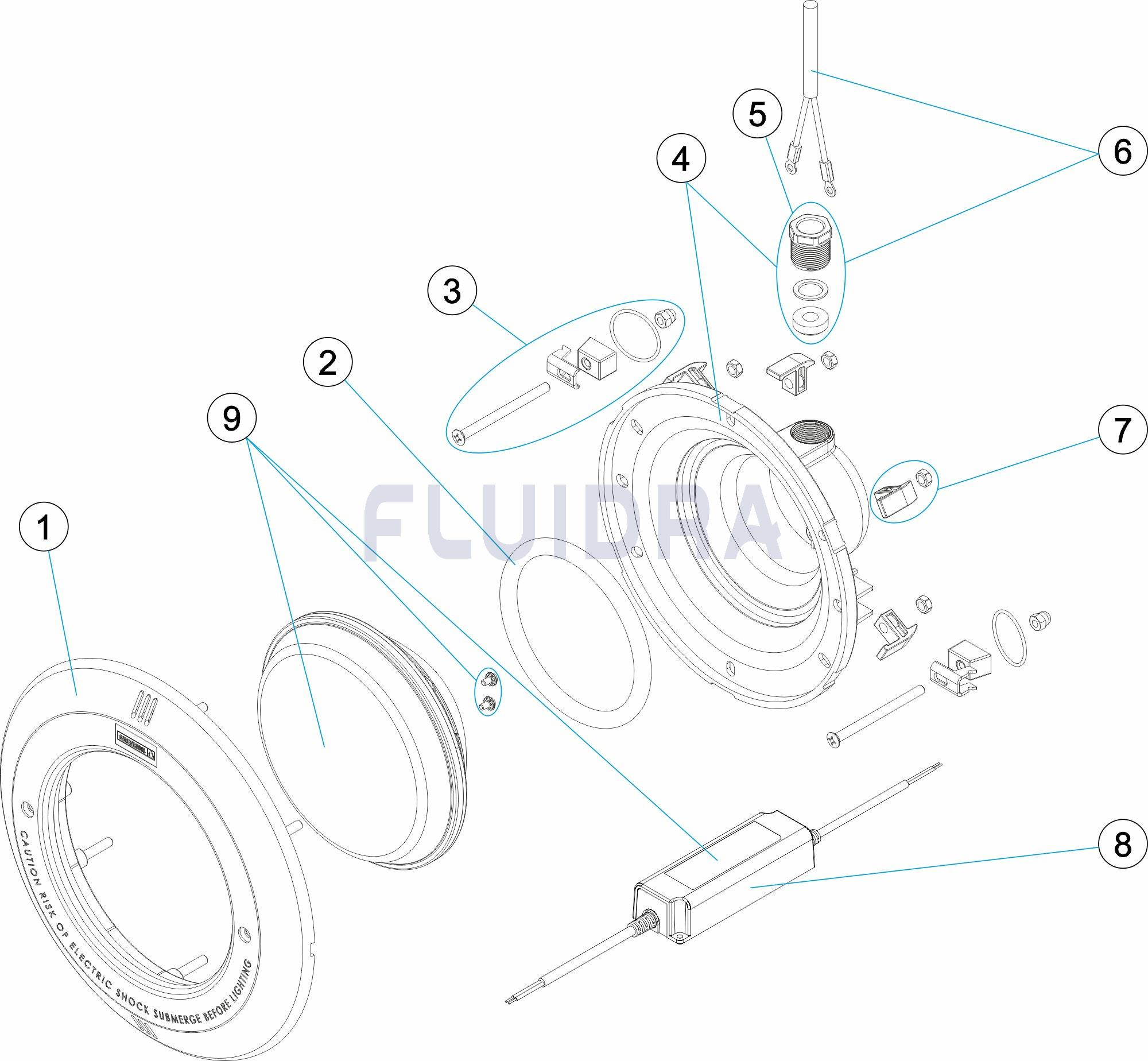 Проектори с PAR56 LED лампа, разработени за постигане на максимална ефективност при потребление на електроенергия. Произведени за използване в басейни, където се изисква добро и хомогенно разпределение на светлината. Предлага се с неръждаема или ABS облицовка и в два вида закрепване: Global, което е система за закрепване, изработена изцяло от пластмаса, или STD, при която закрепването е направено от неръждаема стомана. Версиите с бяла светлина се захранват с 24 Vdc и имат включено захранване, а RGB версиите се захранват с 12 Vac от трансформатор. За да завършите осветителните тела LumiPlus PAR56, трябва да закупите нишата отделно. Налични ниши за бетонен басейн и сглобяем басейн /линейка/панели. Предлага се в следните светли цветове: студено бяло 5700K и топло бяло 3000K. За правилно осветяване на плувен басейн се препоръчва да инсталирате проектор от семейството LumiPlus V1 на всеки 20 m² водна повърхност. Забележка: валидни препоръки за басейни със светли цветове и за проектори с бяла светлина, овърсайз в RGB цветове. В басейни с тъмни цветове или неръждаема стомана се препоръчва да се увеличи съотношението на проекторите на m². Проекторите трябва винаги да се монтират потопени във вода. Версия на консумация на енергия V1 Бял DC: 14W (14VA) Консумирана мощност версия V1 Бял AC: 16W (24VA) Захранване: 24Vdc (DC модели с бяла светлина) / 12Vac Продължителност на живота: L70 - 50 000ч Глобални версии: Устойчив на морска вода