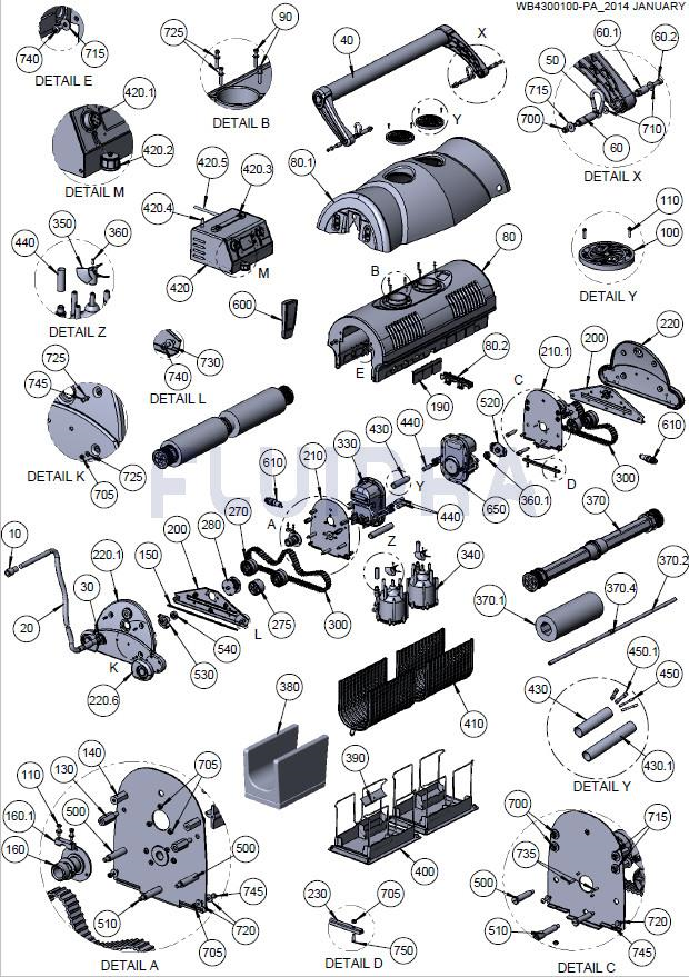 Robot cleaner specially designed for public pools up to 50 m. The unit is made of resistant materials for the most demanding applications. Equipped with a gyroscope, it ensures a total cleaning of the bottom of the pool. Includes programmable power supply with different cleaning programs, remote control, 36m or 45m of cable, stainless steel transport trolley. Equipped with 4 high-quality brushless DC motors, the two pump motors offer a suction flow of 40 m3 / h, the possibility of setting the cycle time (from 3 to 6 h) as well as delaying the start of the cycle.