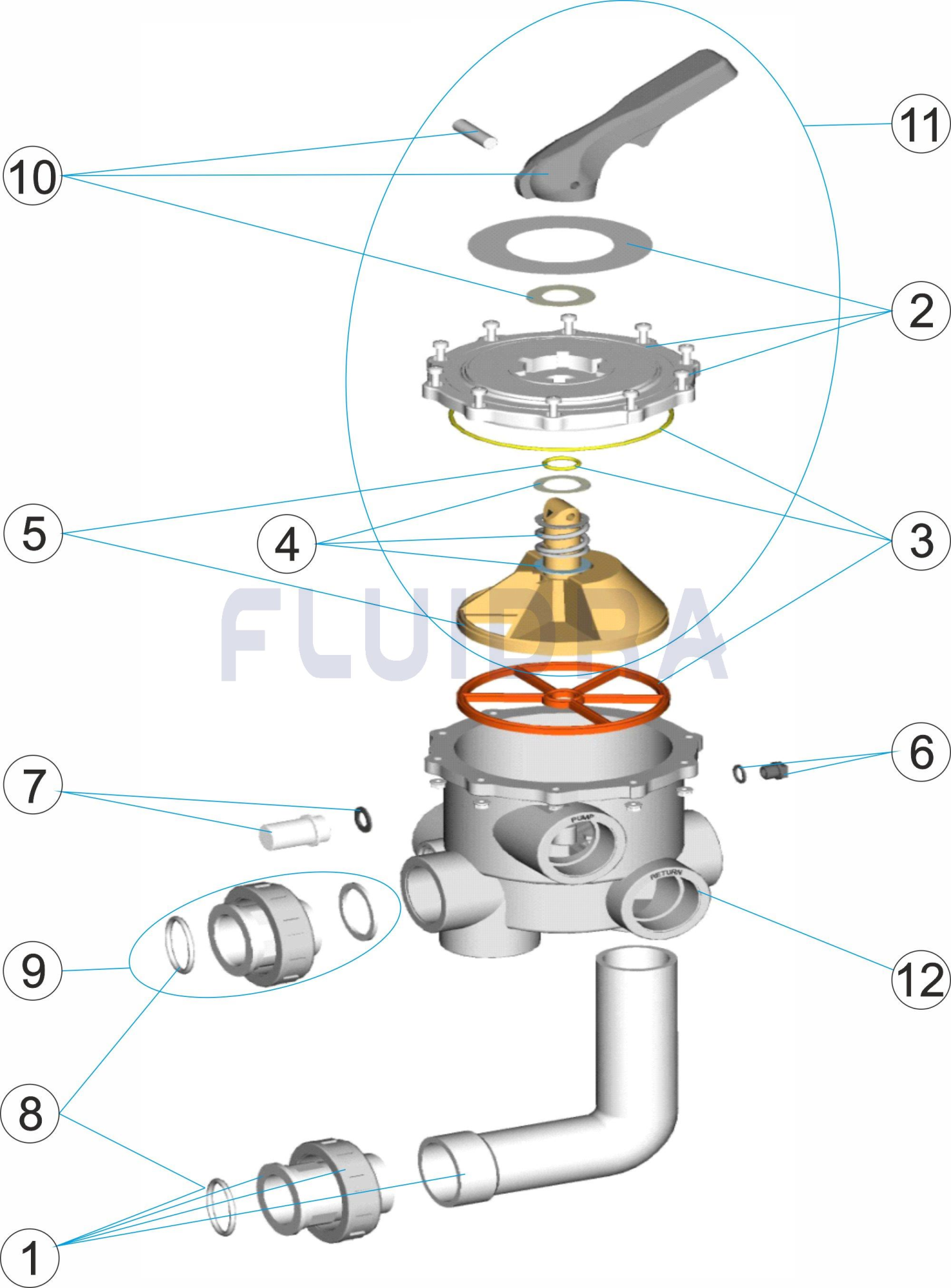 Six-way to perform various functions in a hydraulic circuit: filtering, emptying, closing, flushing, recirculation and filter rinsing. Their design, basically functional, offers a wide range of possibilities of coupling to any installation, assuring a perfect sealing and a comfortable handling.