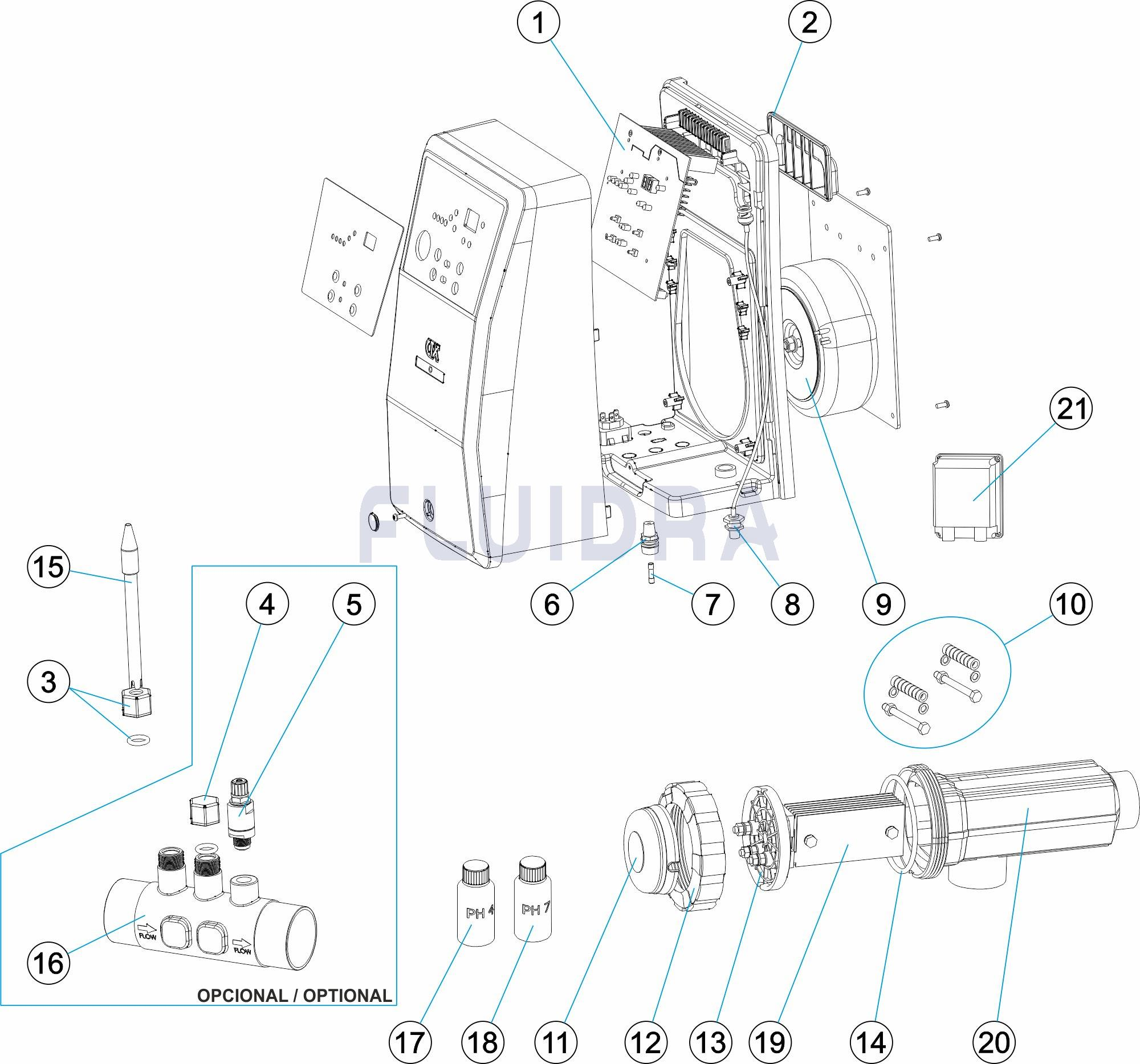 • Dosing pump included with pH option.