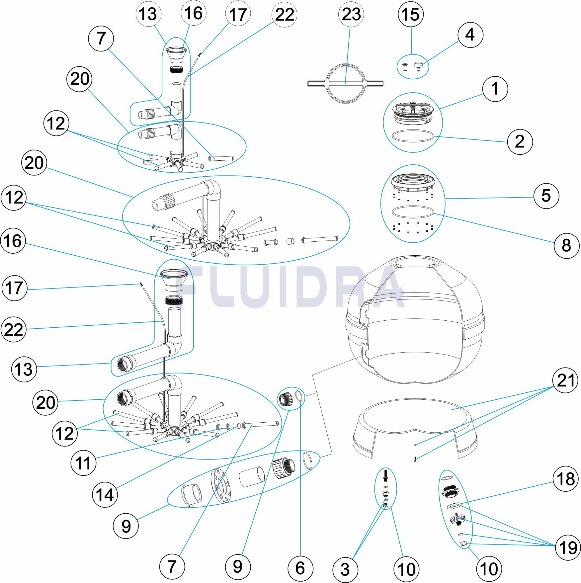 La gama Vesubio es amplia para llegar tanto al sector de piscina pública como de piscina privada. Filtros fabricados con proyección simultánea de resina y fibra de vidrio. Tapa roscada con tornillos de gran