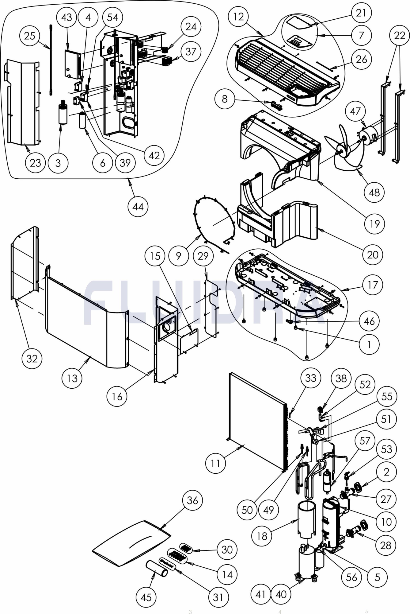 • Polipropileno y acero galvanizado, pintado epoxi (cuerpo) o prepintado (panel frontal)