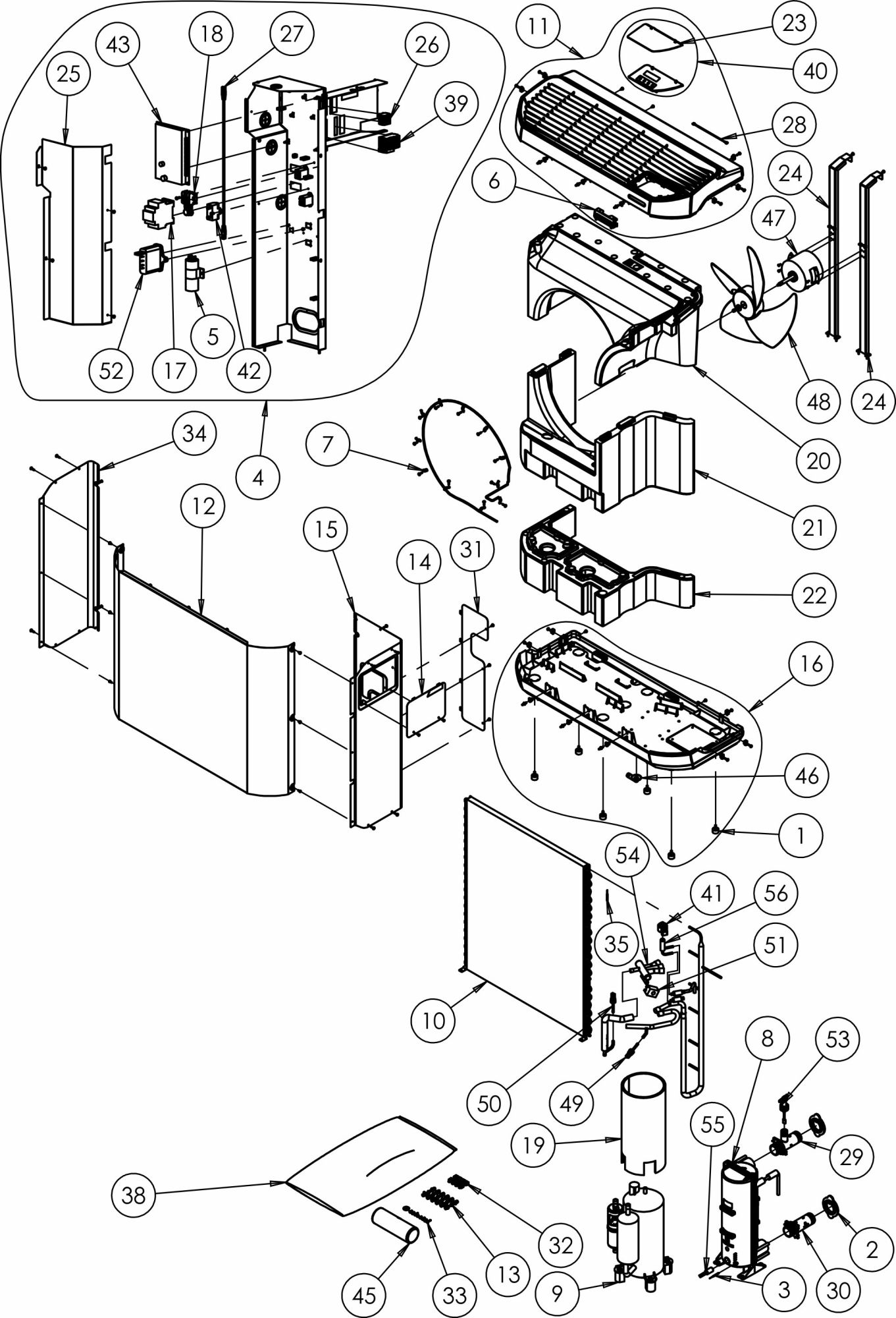 • Polipropileno y acero galvanizado, pintado epoxi (cuerpo) o prepintado (panel frontal)