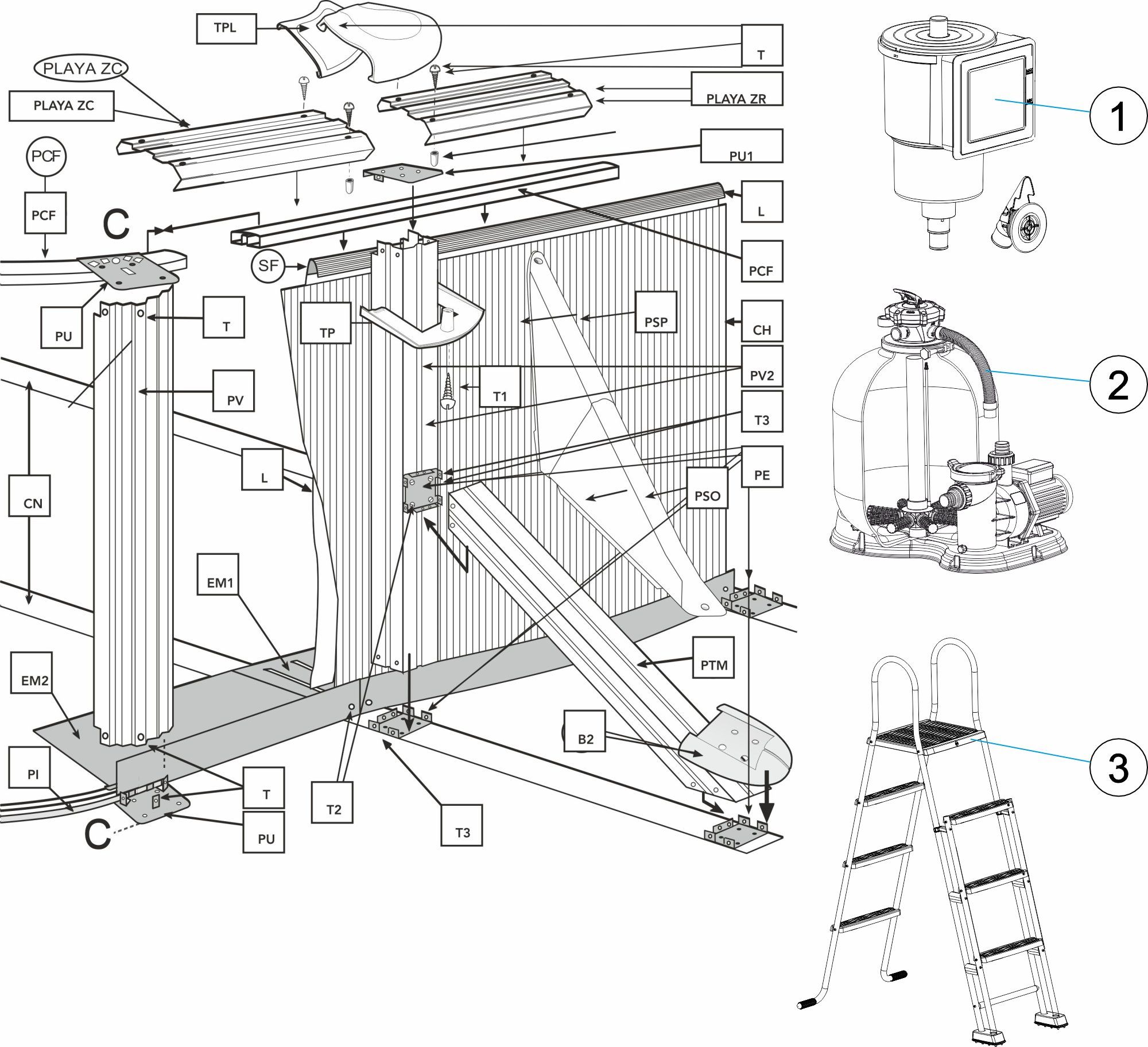 · Tempo de instalação de piscinas: 7 horas com 2-3 pessoas
