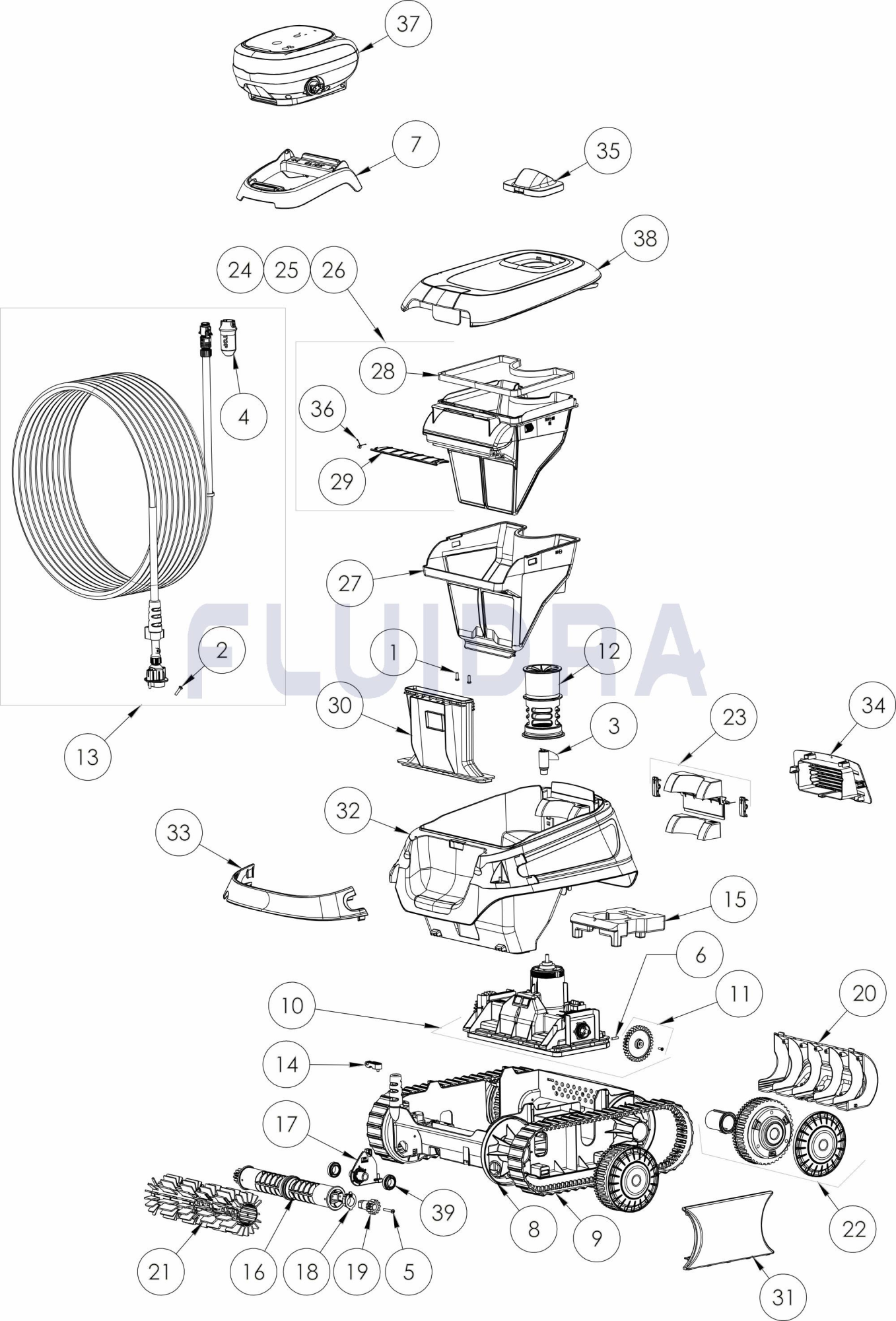- 2h floor, wall, waterline cleaning cycle for pools up to 9x4m
