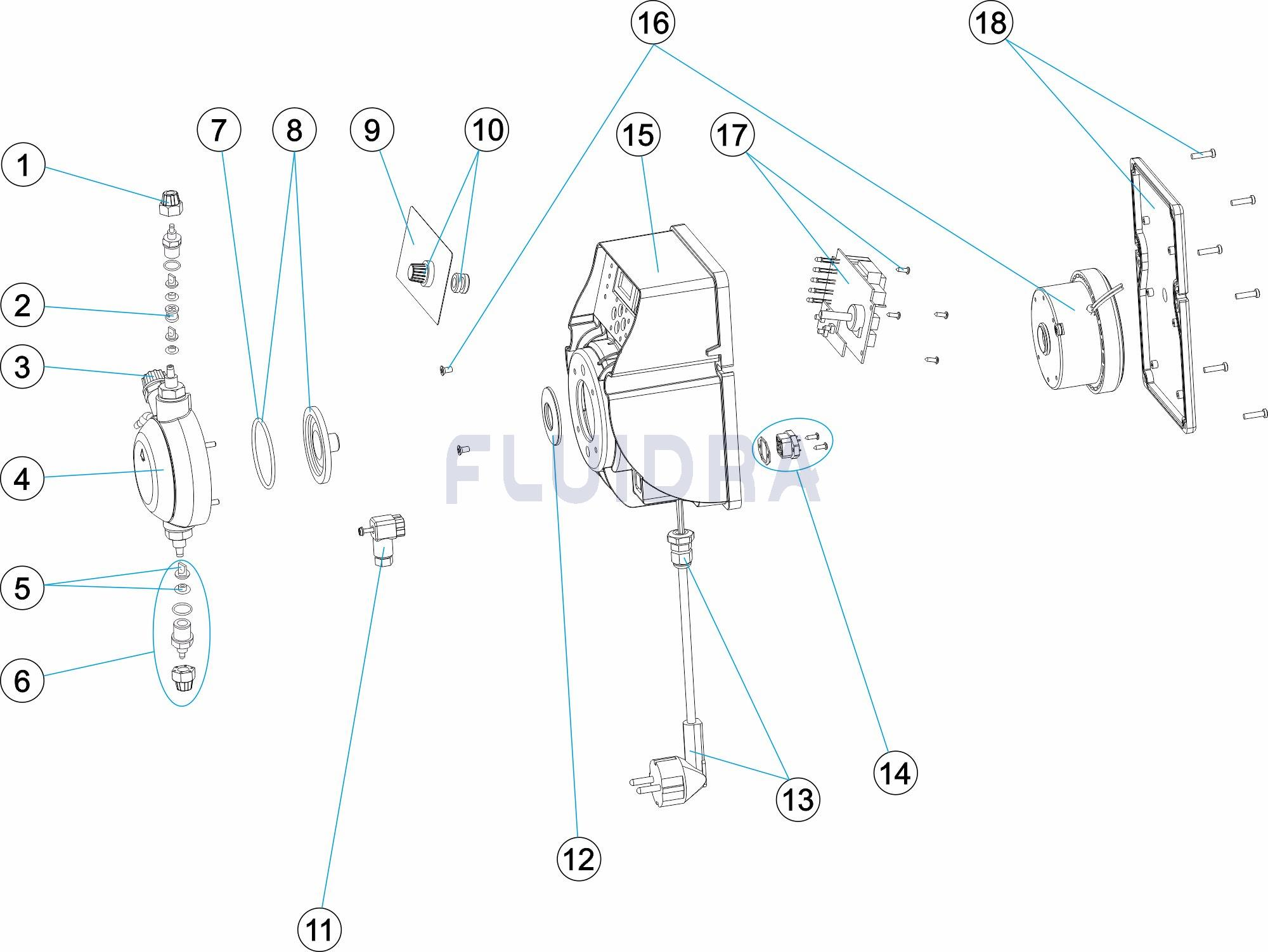 Bombas de membrana de dosagem constante e caudal regulável manualmente com um potenciómetro que determina a frequência das injeções. Frequência de regulaçào de 0 a 100%.
