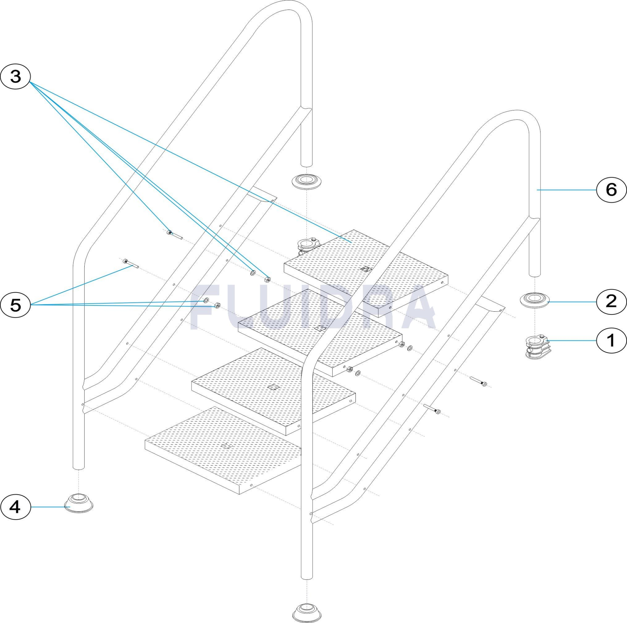 Solicite mais informações00116 | Modelo de escada largura 500 mm - tubo Ø 43 mm AISI-316L - 4 degraus