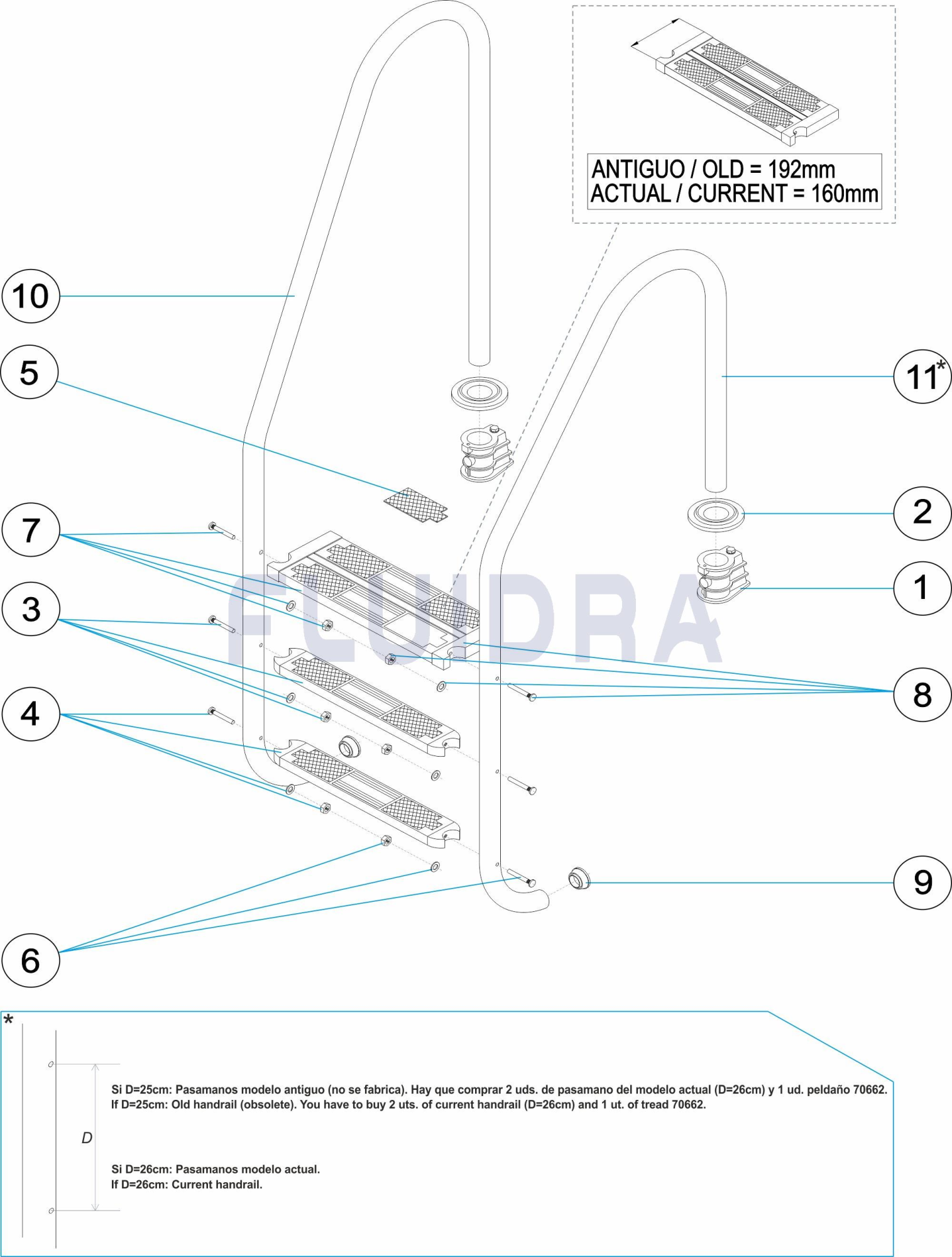 - Escada com corrimão Standard assimétrico com degrau modelo Luxe