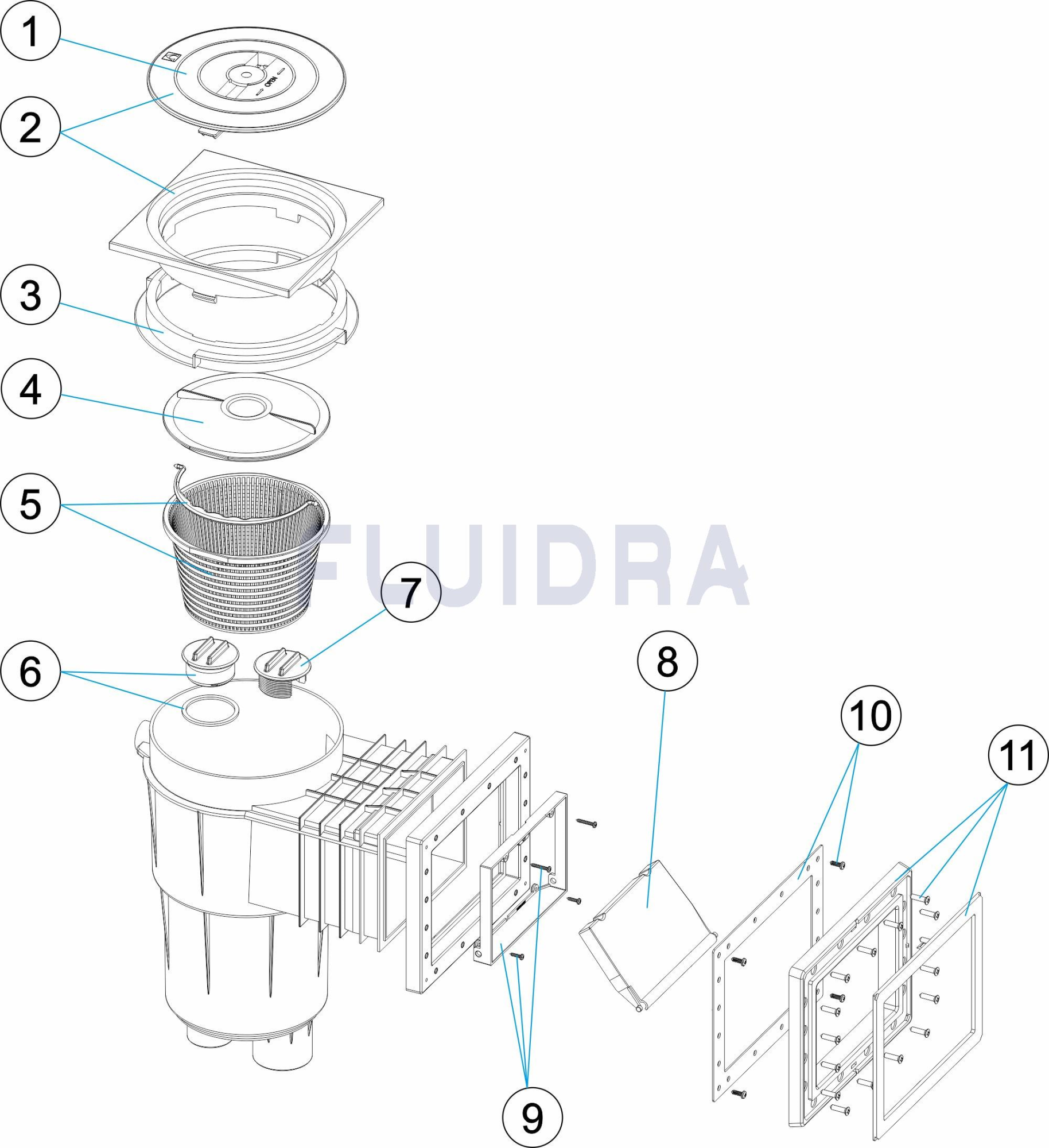 Solicite mais informações11309CL129 | SSkimmer com boca standard - tampa quadrada Cinza claro