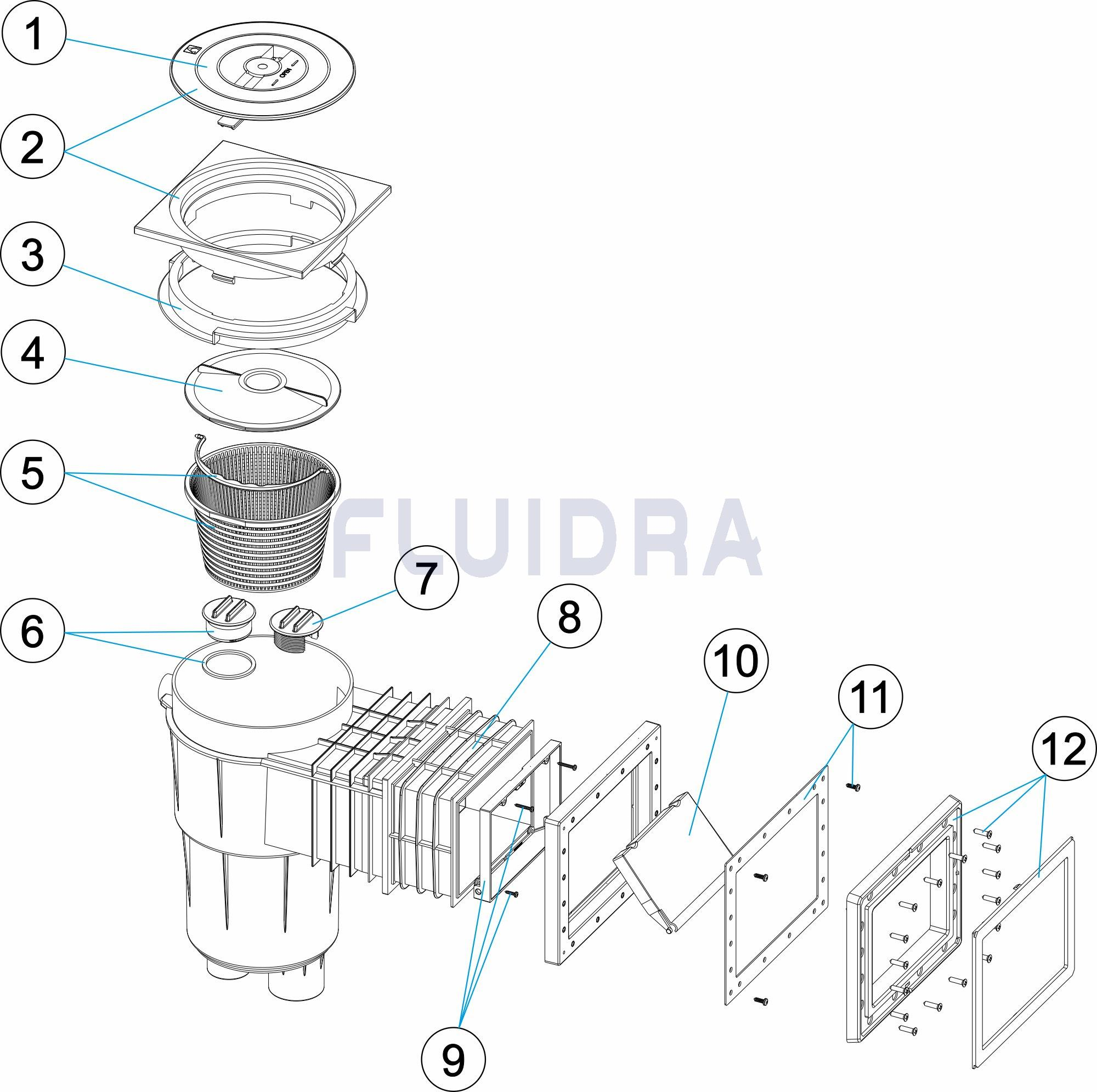 Solicite mais informações11310CL129 | Skimmer com boca standard e extensão 10 cm - tampa quadrada Cinza claro