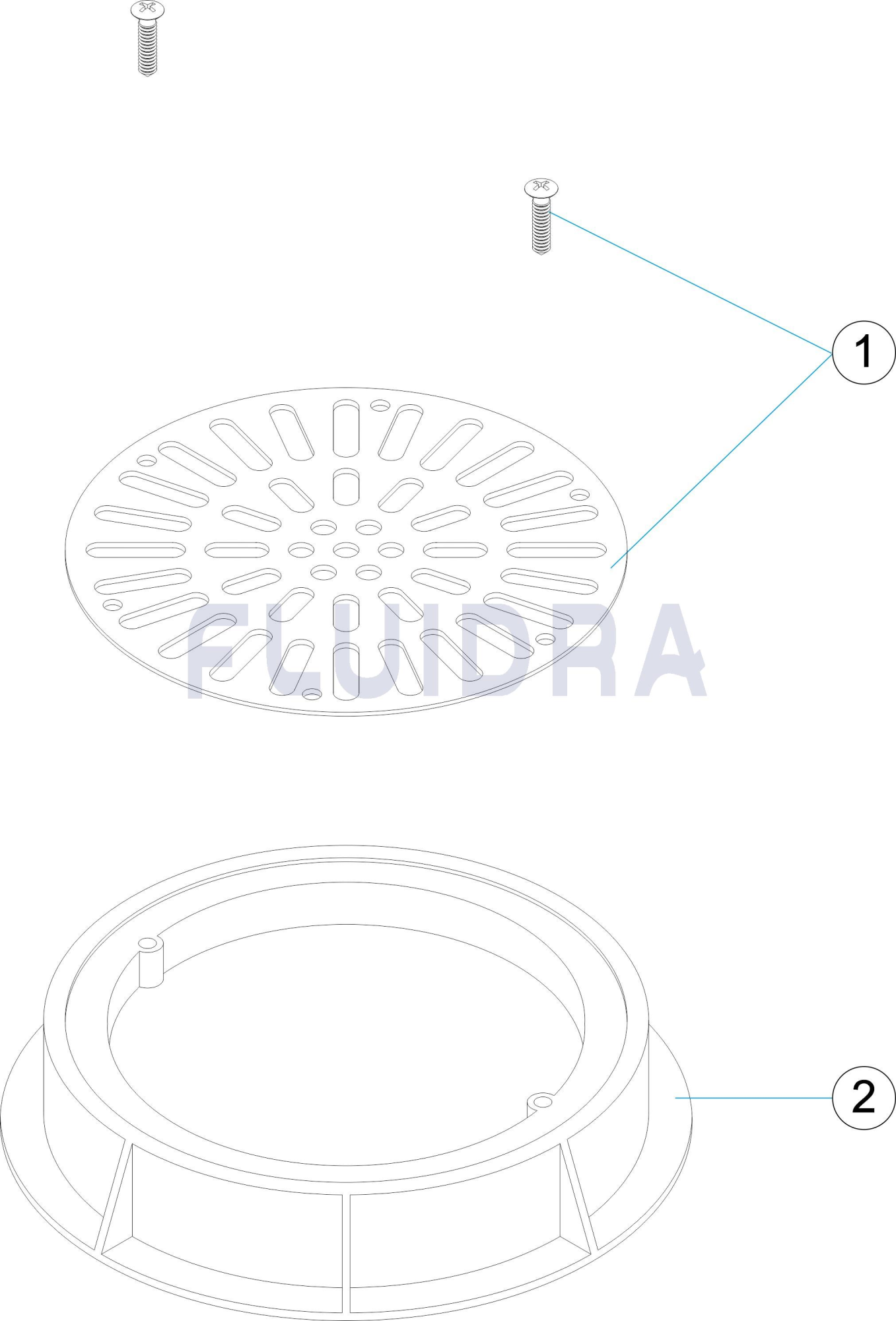 Suporte anelar e grelha de ABS branco. Fornecido com parafusos de fixação da grelha. Esta grelha destina-se à câmara de aspiração construída no local.