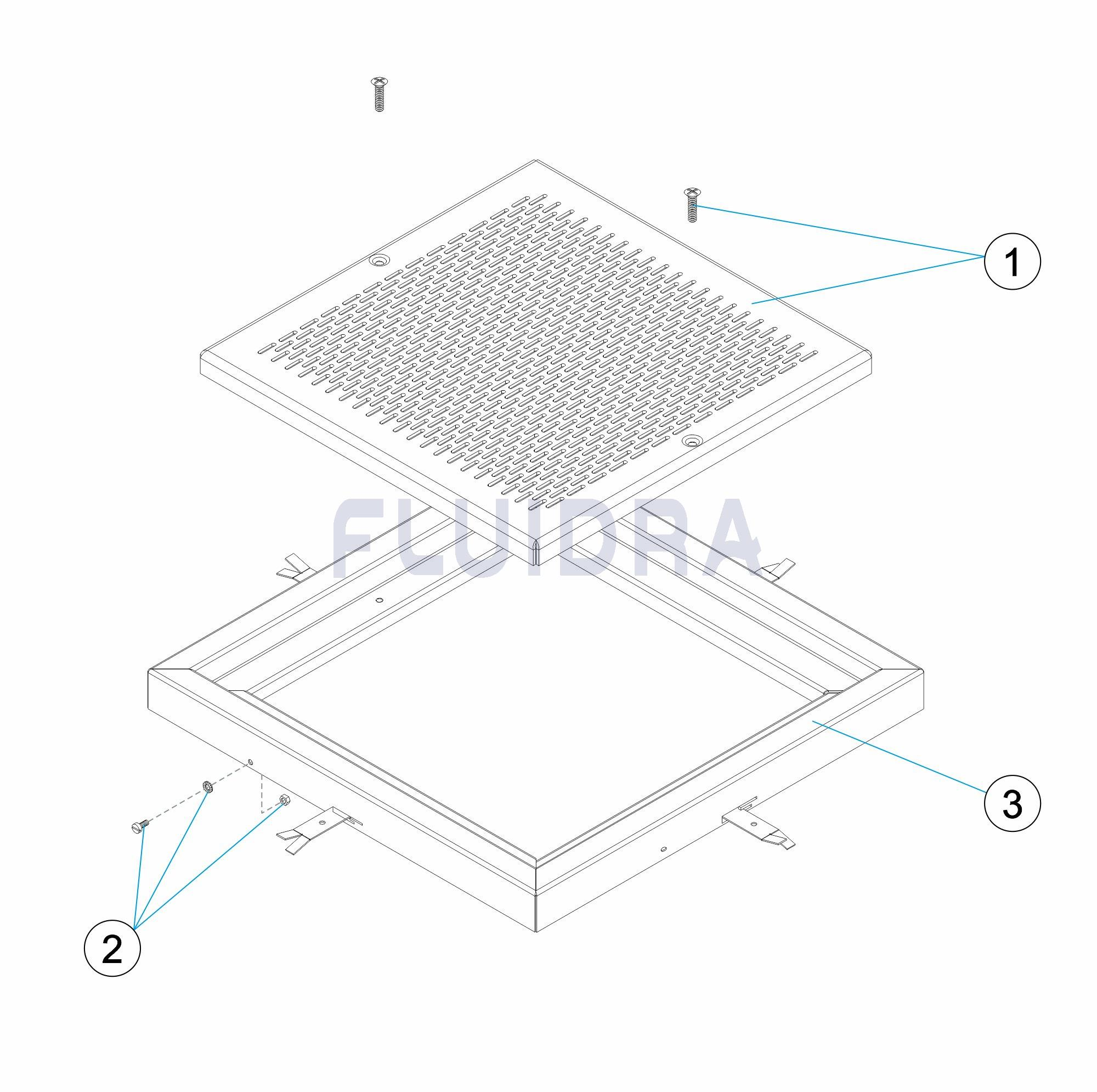 Concebido para piscinas de betão. Estrutura de suporte e grelha em aço inoxidável polido. Fornecido com parafusos de fixação. Outros tamanhos por encomenda.