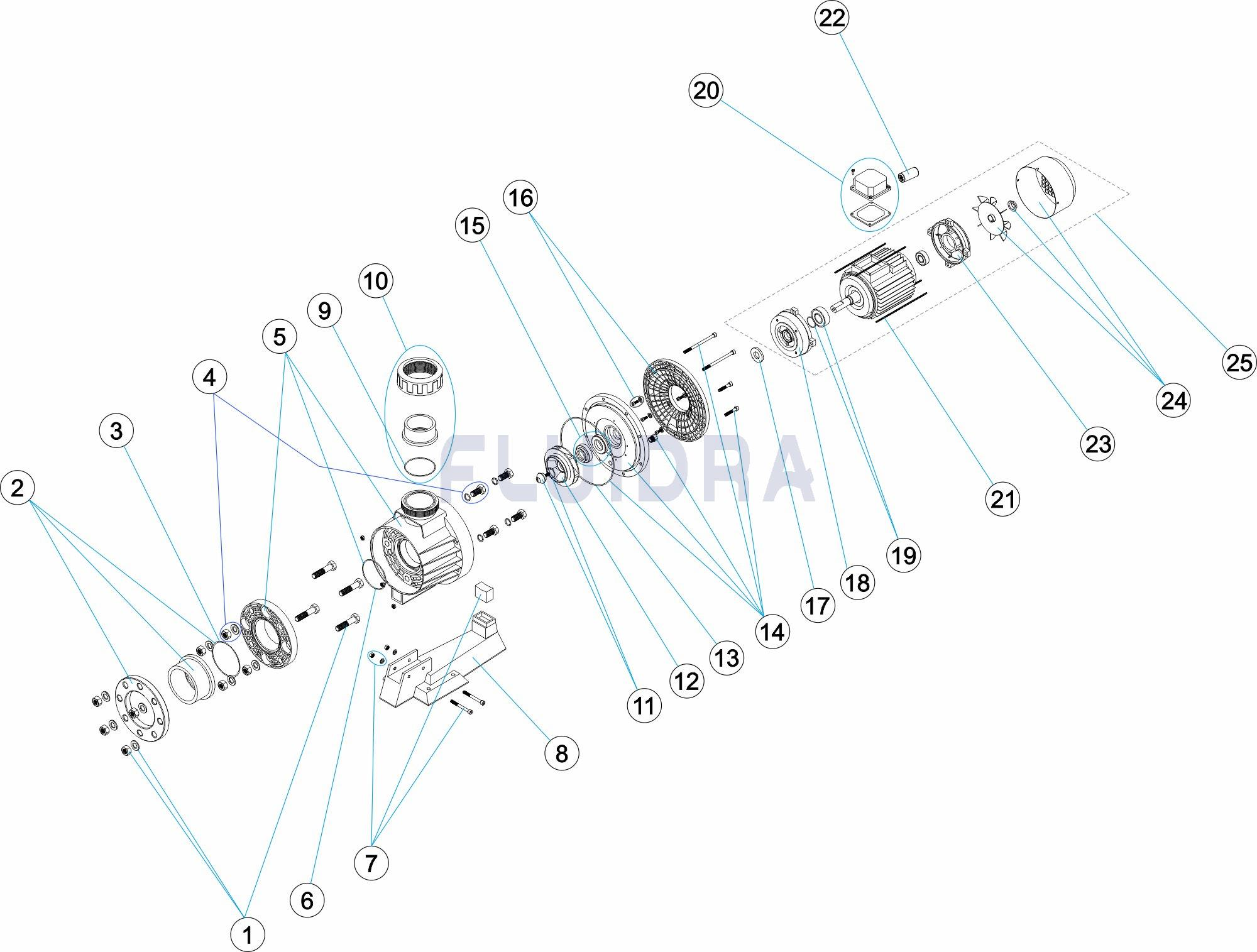 Especialmente desenhadas para equipamentos contra corrente com elevadas prestações de caudal com um maior diâmetro das ligações de aspiraçào e impulsào da bomba. É importante acrescentar singularidade na instalaçào em que limitem notavelmente estas ligações. Todas as componentes metálicas da bomba que estào em contacto com a água sào fabricadas em aço inoxidável AISI-316 para dar grande resistência à corrosào.