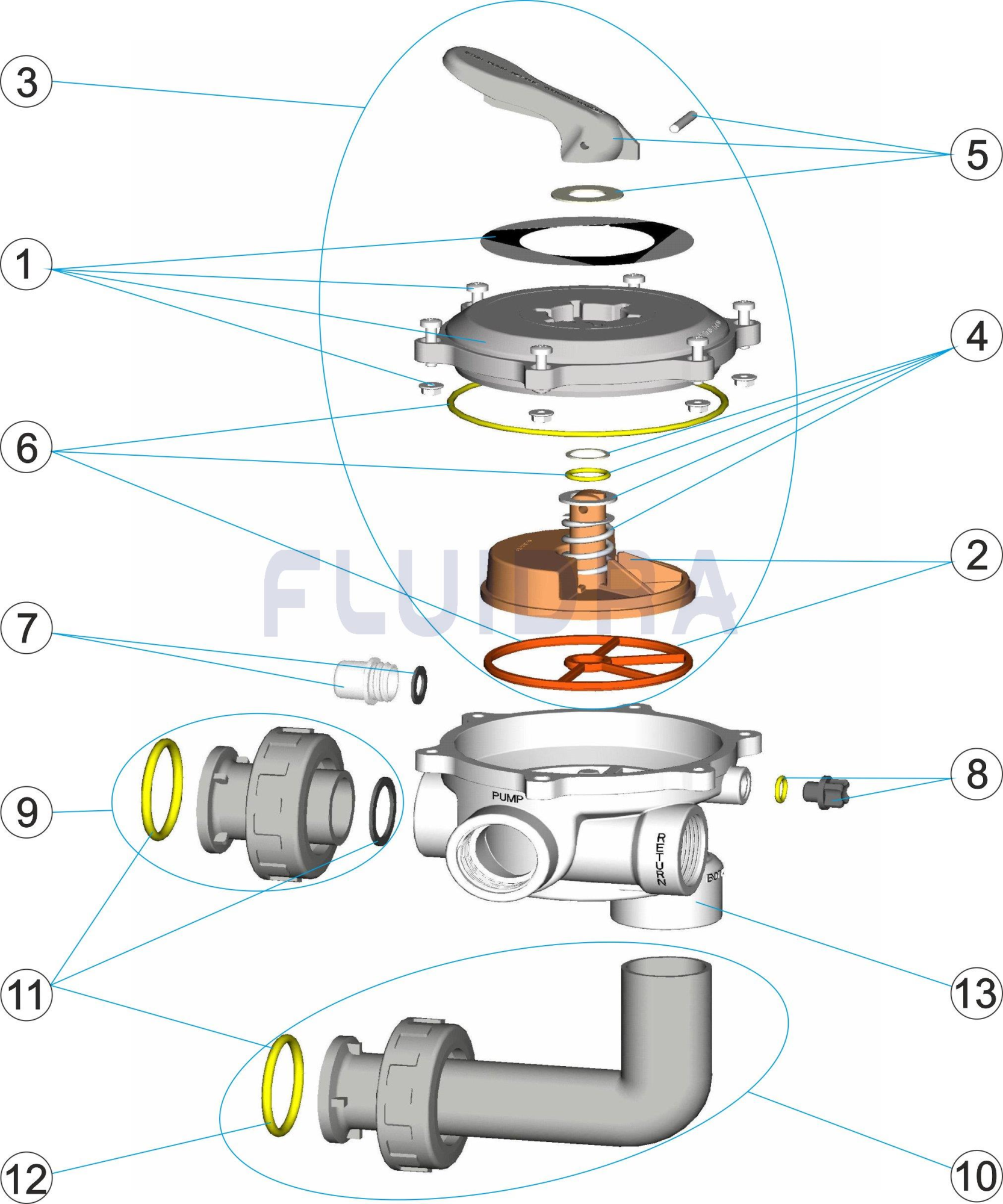 34543 | Válvula selectora lateral 1 ½ 'con enlace a filtroFlat - Var. 3