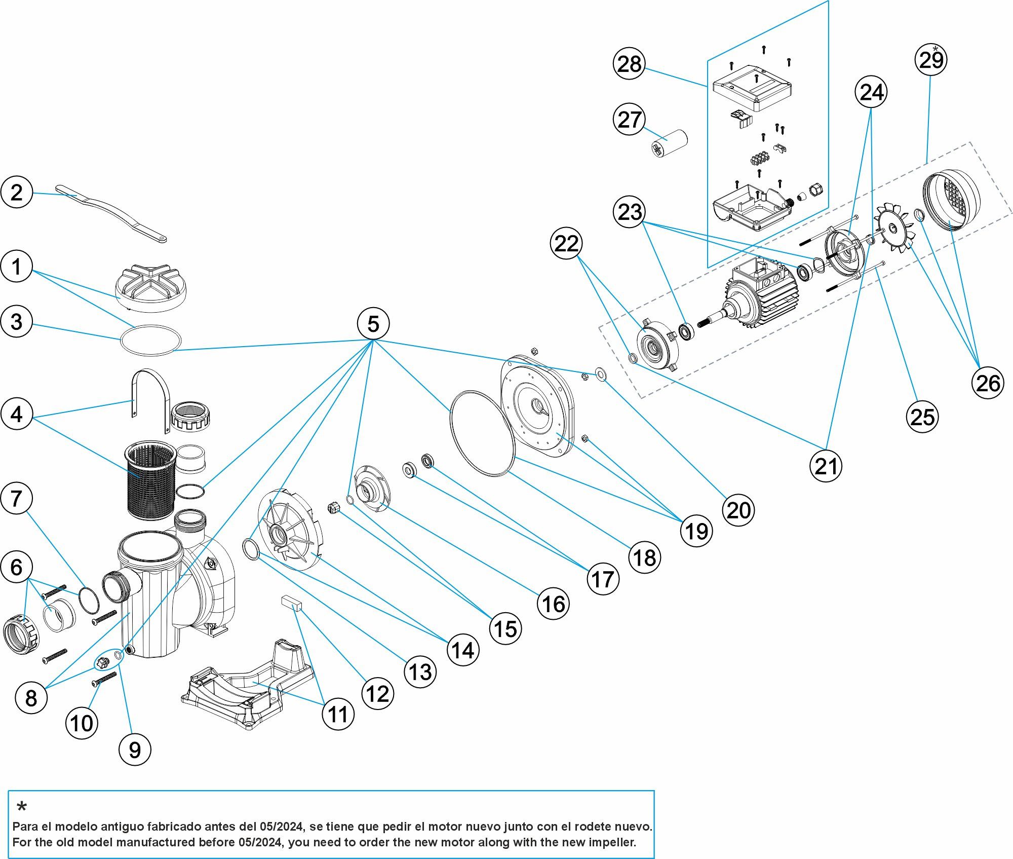 Classe F, AISI-316 em todas aquelas partes em contacto direto com a água.