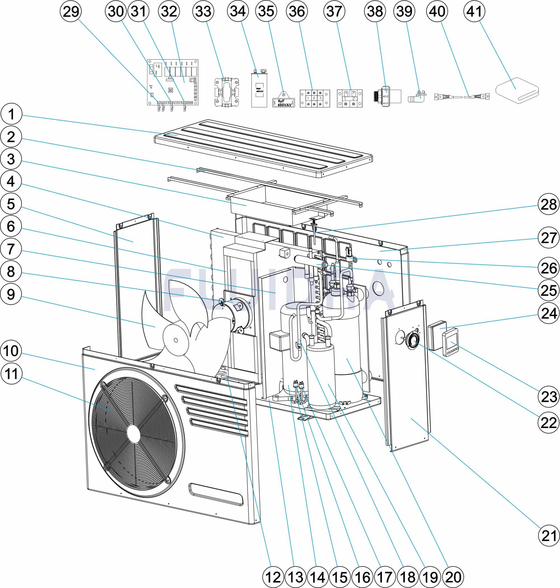 Bomba de calor de ar / água para aquecer as piscinas da maneira mais econômica. Piscinas residenciais de até 80 m3. Esta tecnologia permite prolongar a temporada de nataçào para desfrutar da piscina por mais meses por ano. A sua capacidade de extrair ener