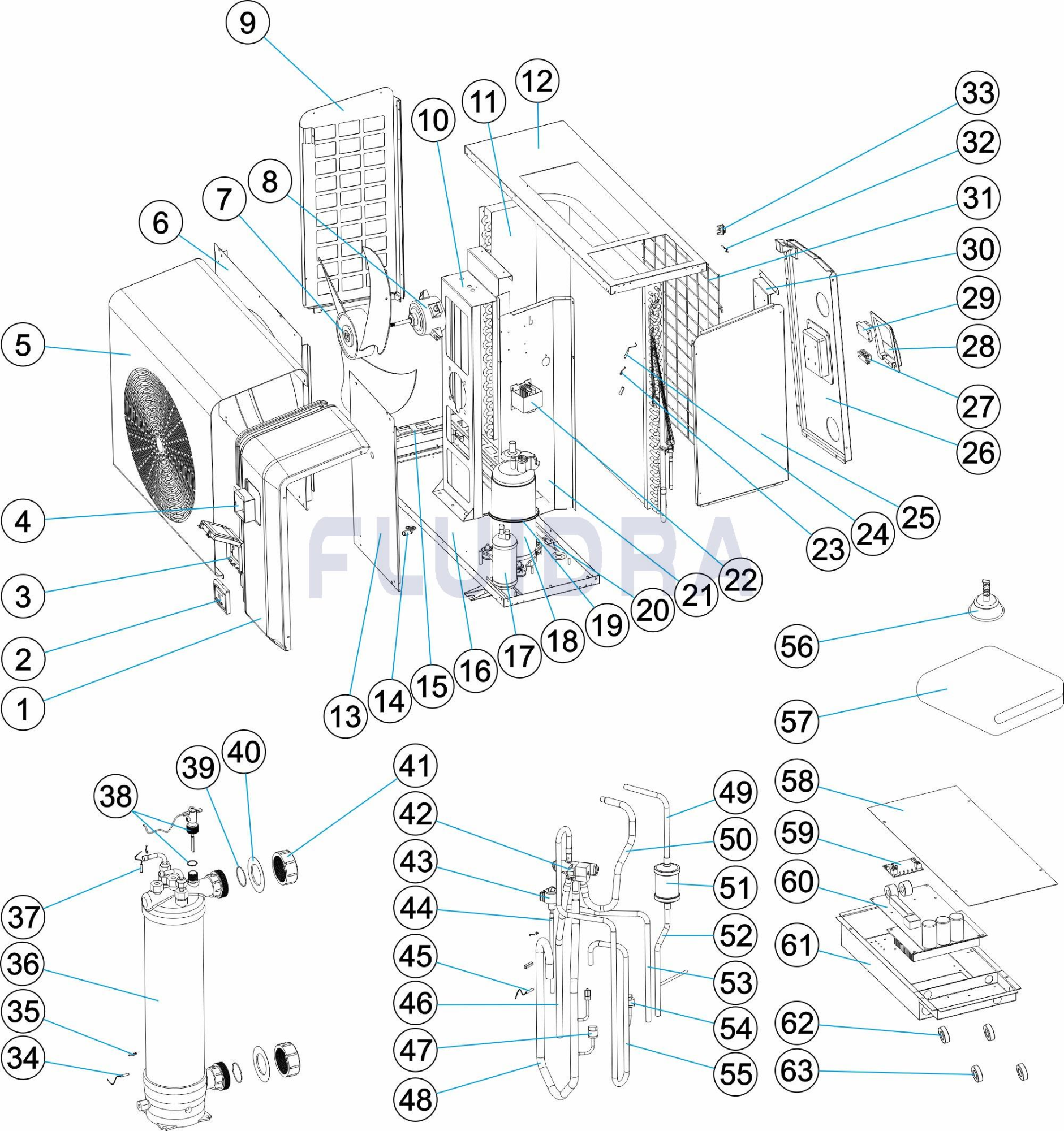 • Permutador de titânio, compatível com tratamento de água salgada