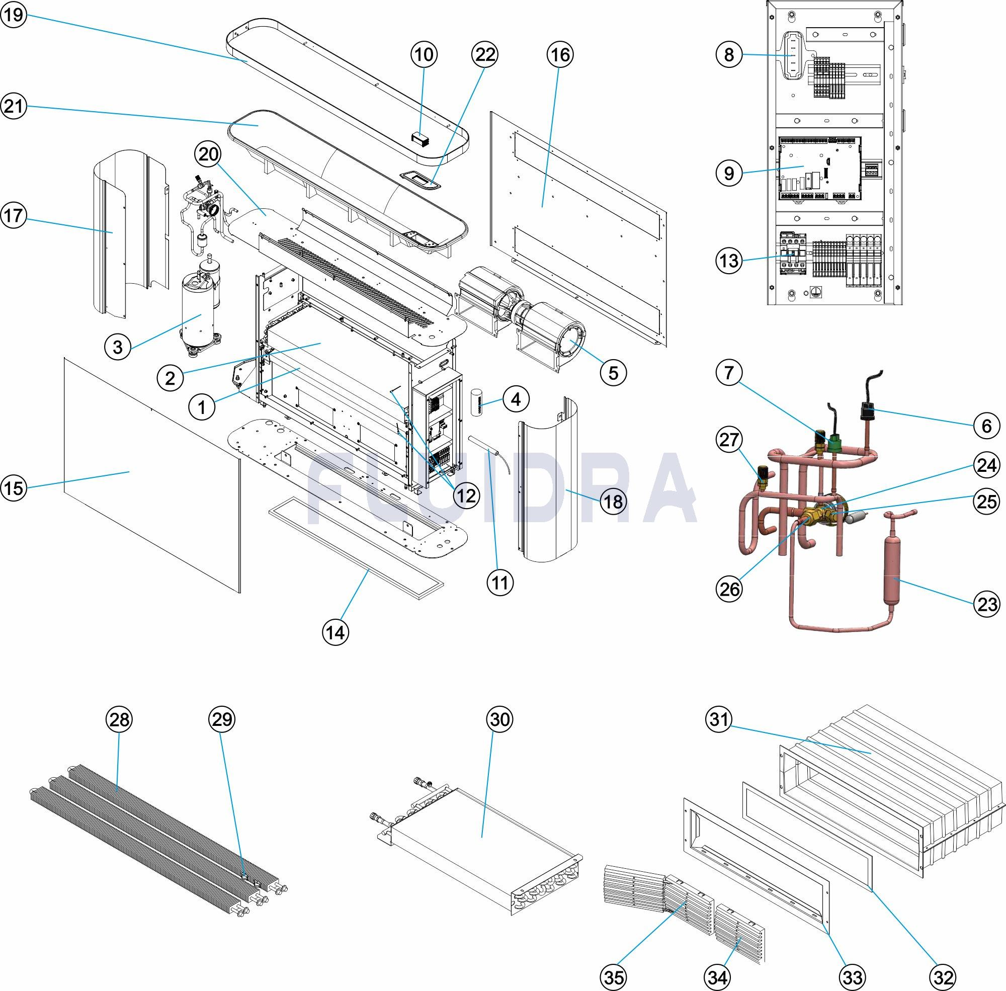 corpo principal do desumidificador (sem necessidade de espaço adicional)