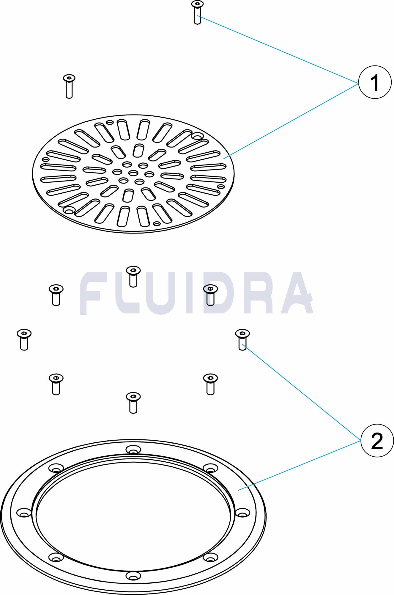 Embelezadores de AISI-316L para drenos de ABS. Inclui parafusos.