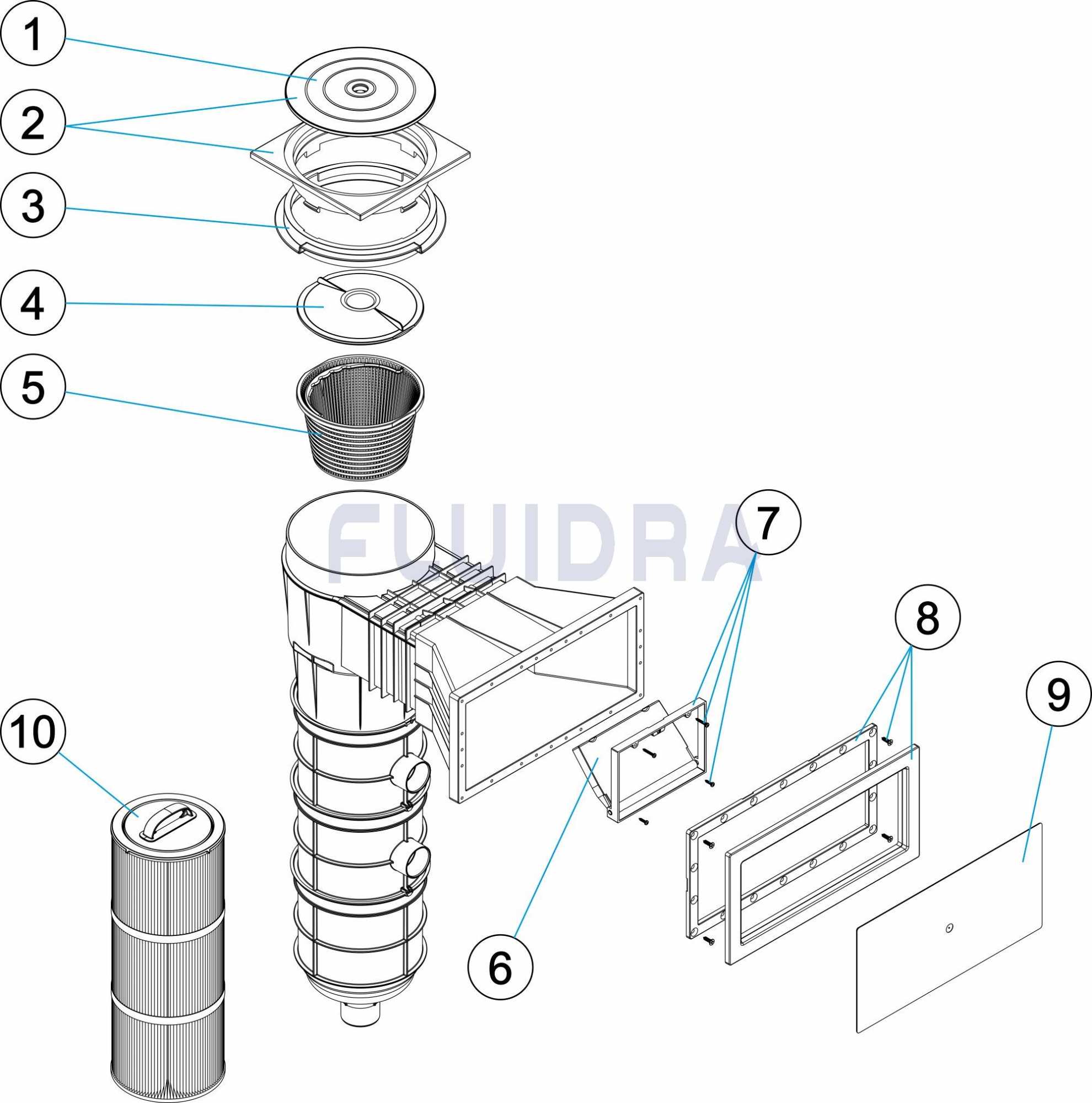 Solicite mais informações73158 | Skimmer filtrante para betão com 2 cartuchos de 16 m3
