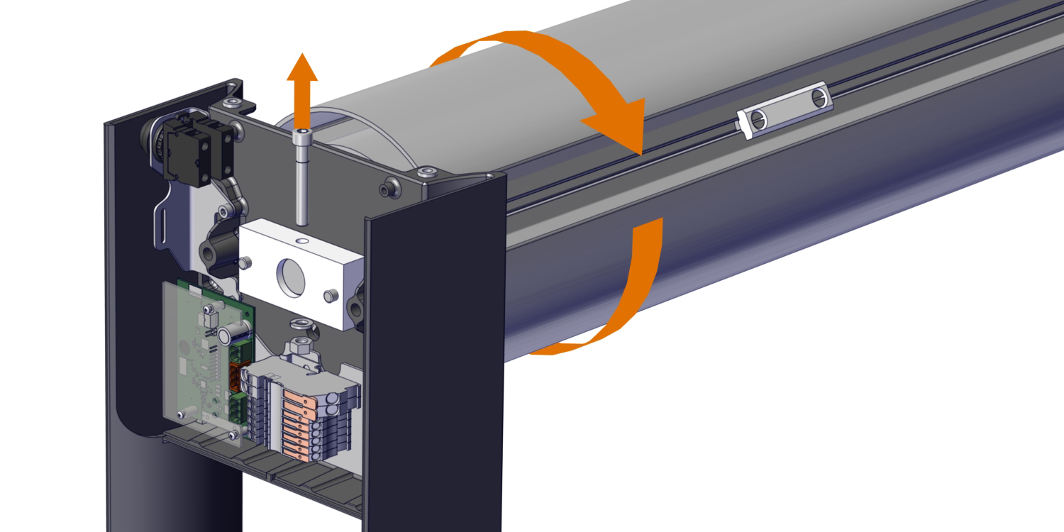 Overground roller shutter covers OCTÈO foot in white / anthracite. Pool length 3.0 m - 12.0 m pool width 3.03 m / pool length 3.0 m - 9.0 m pool width 3.53 m / pool length 3.0 m - 10.0 m pool width 4.03 m. Set consists of consisting of feet, shaft and motor with limit switch. A key switch is integrated in a base for operation. Version with contact for electrolysis.