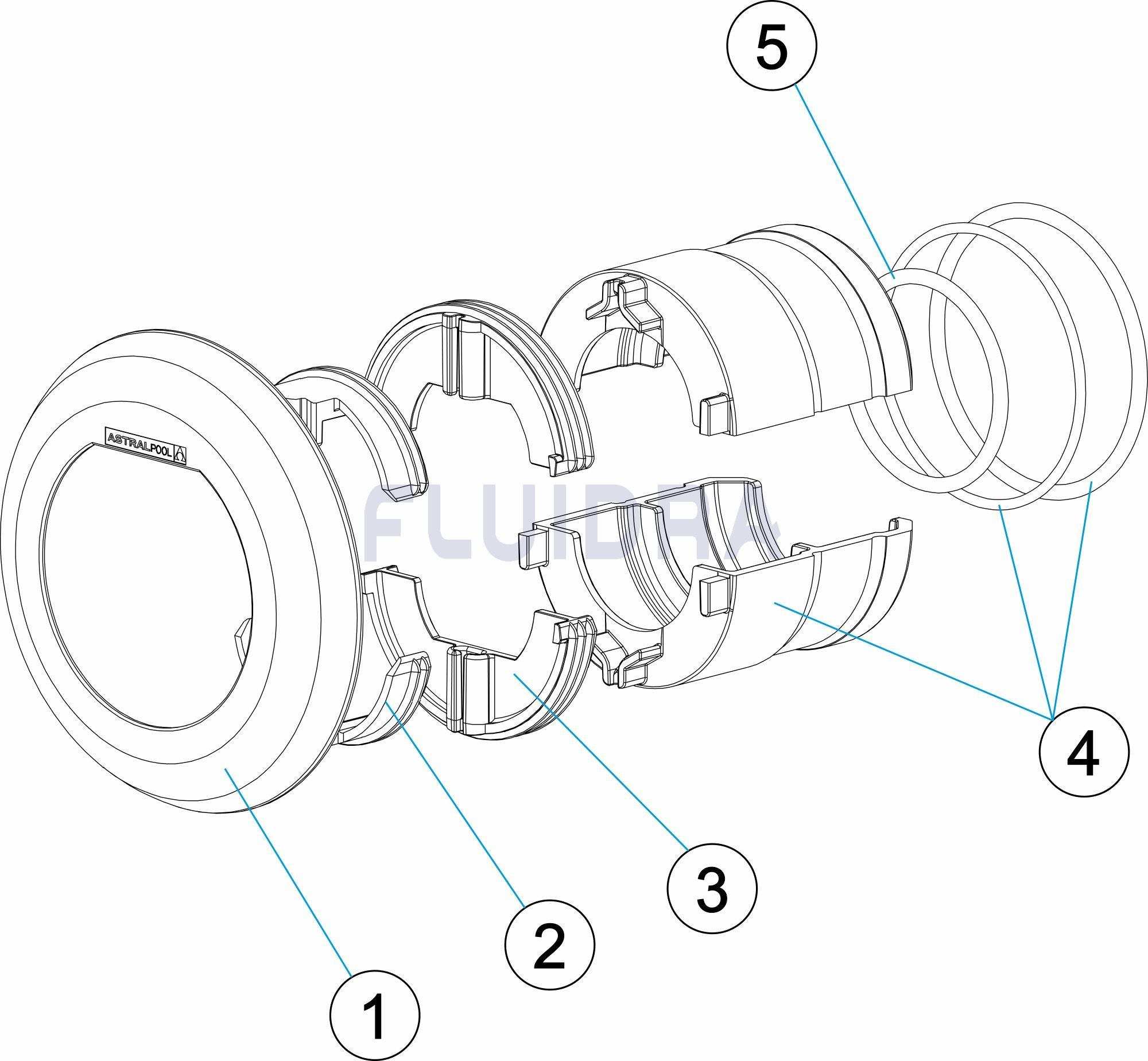 Para ser instalado em tubos ou passamuros em piscinas de betão.
