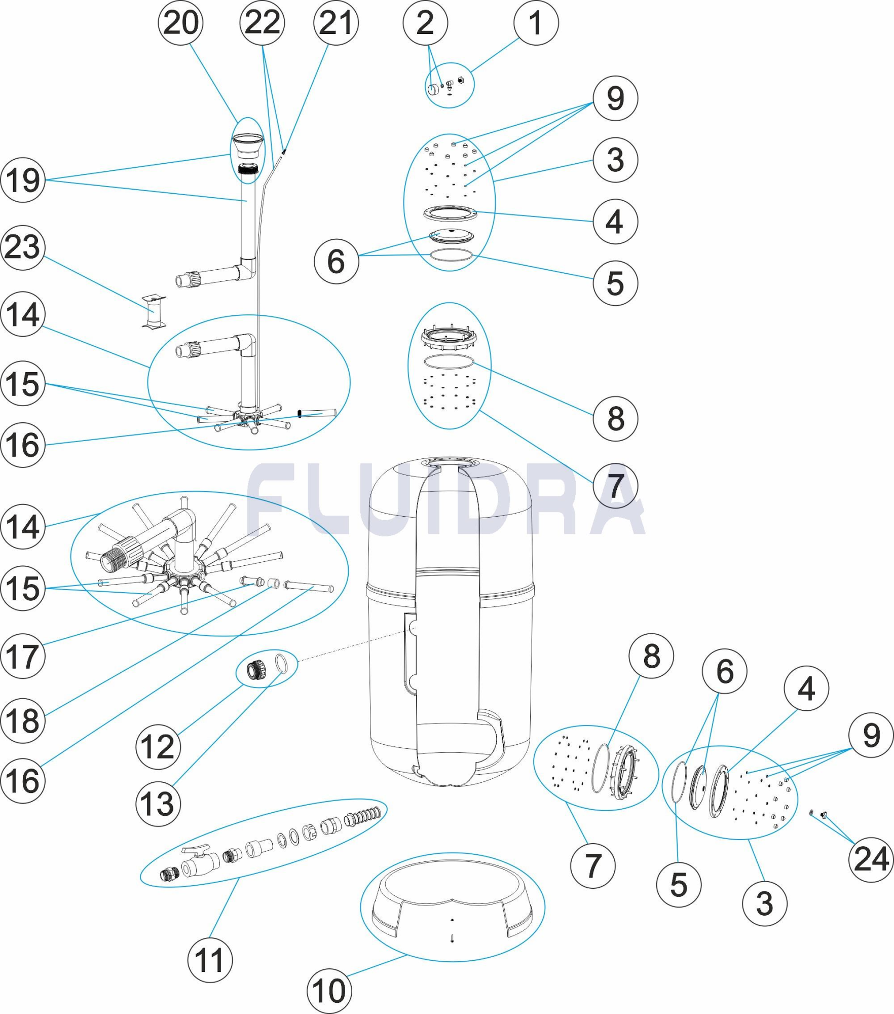 Solicite mais informações41373 | Filtro Artic Plus, diâmetro 950 mm, conexões de 2 1/2 ", braços do coletor
