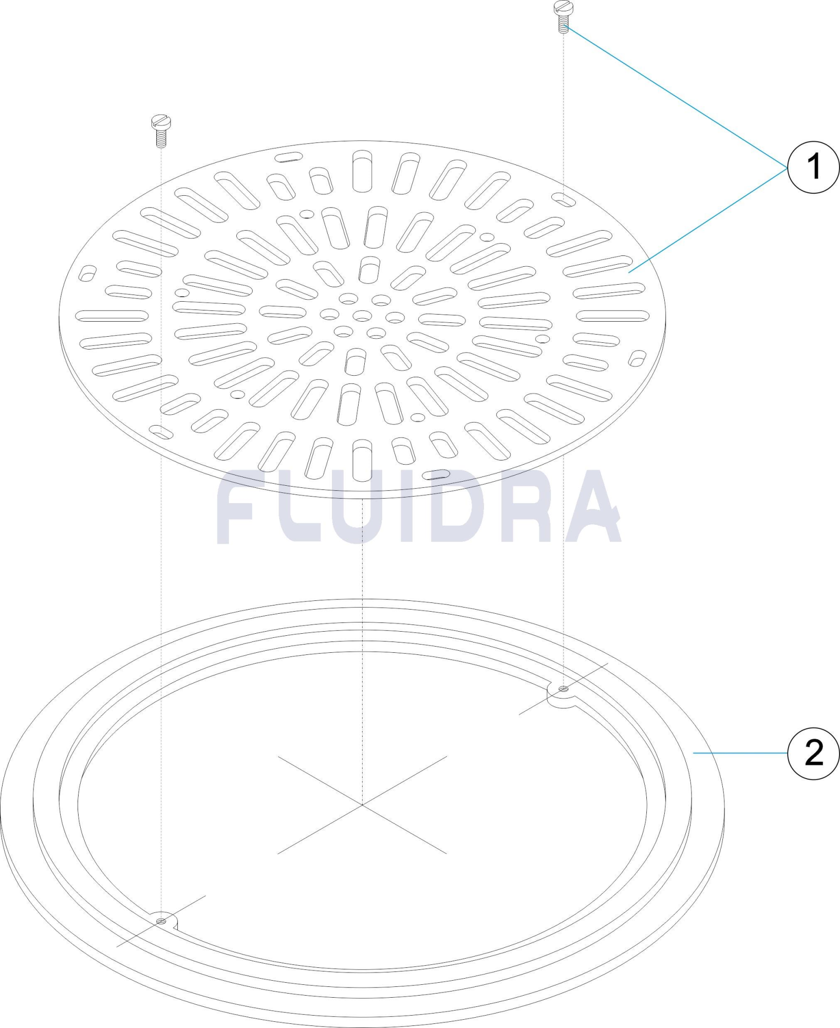 Anel de apoio de alumínio, grelha de aço inoxidável AISI-316L. Fornecido com parafusos de fixação da grelha. Caudal máximo recomendado: 27 m3/h.